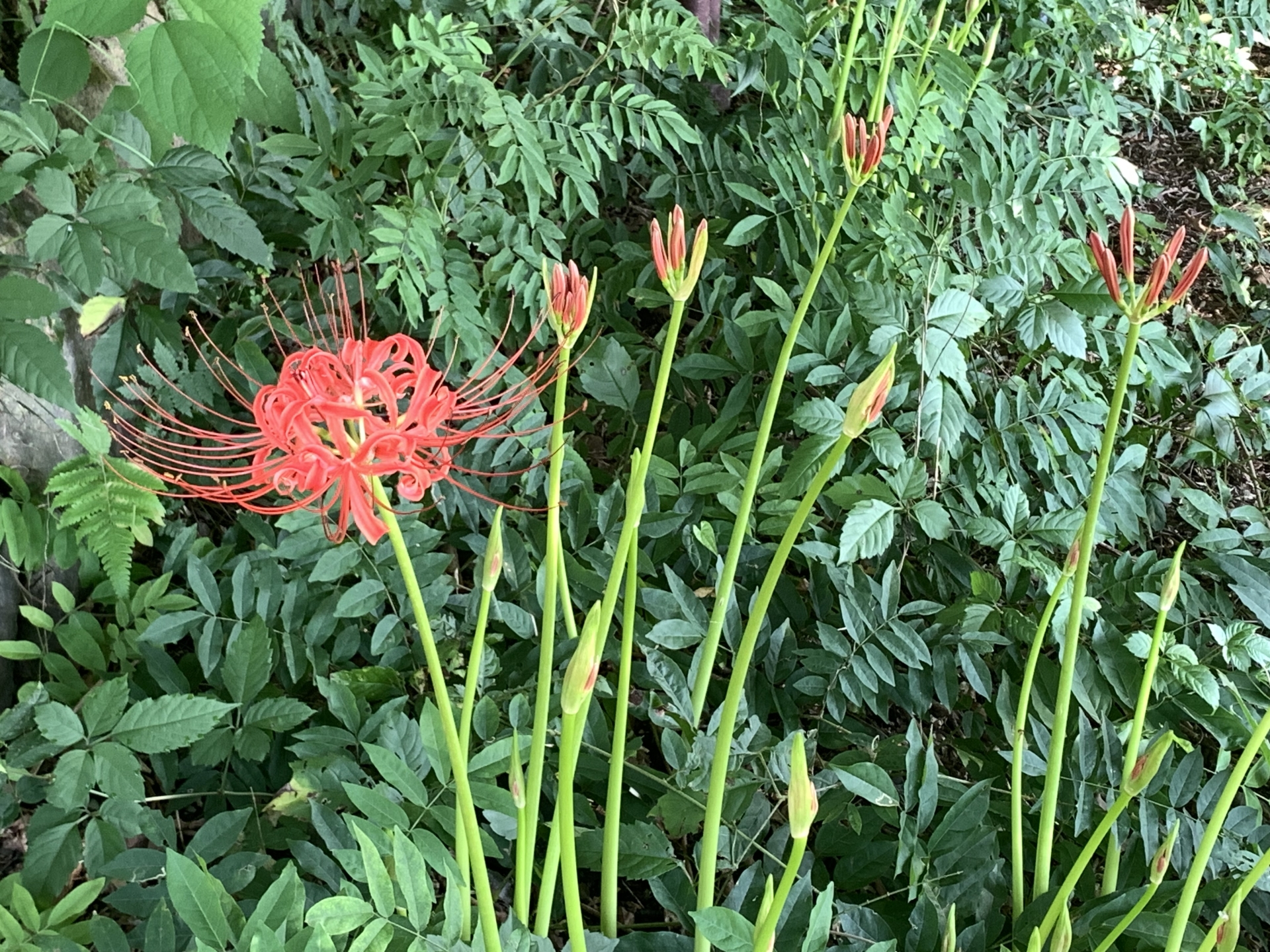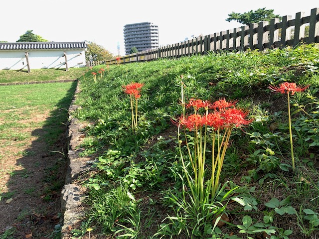 ヒガンバナ | つぼみ・開花はじめ | 9月中~下旬 | ⑪銅門広場西側 ほか園内 |