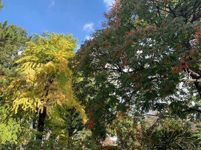 園内にはそれぞれ大木が1本ずつで、ちょうど色づき始めたところです。